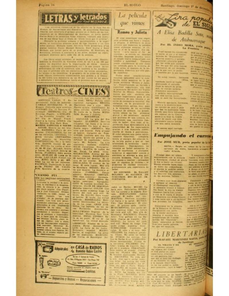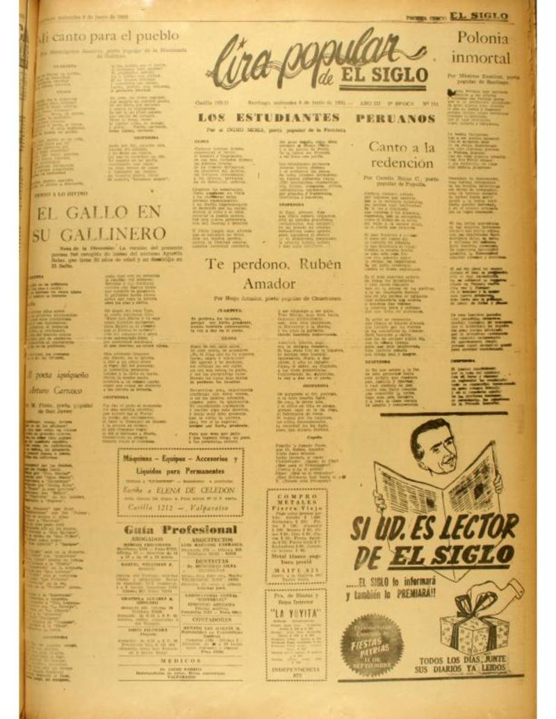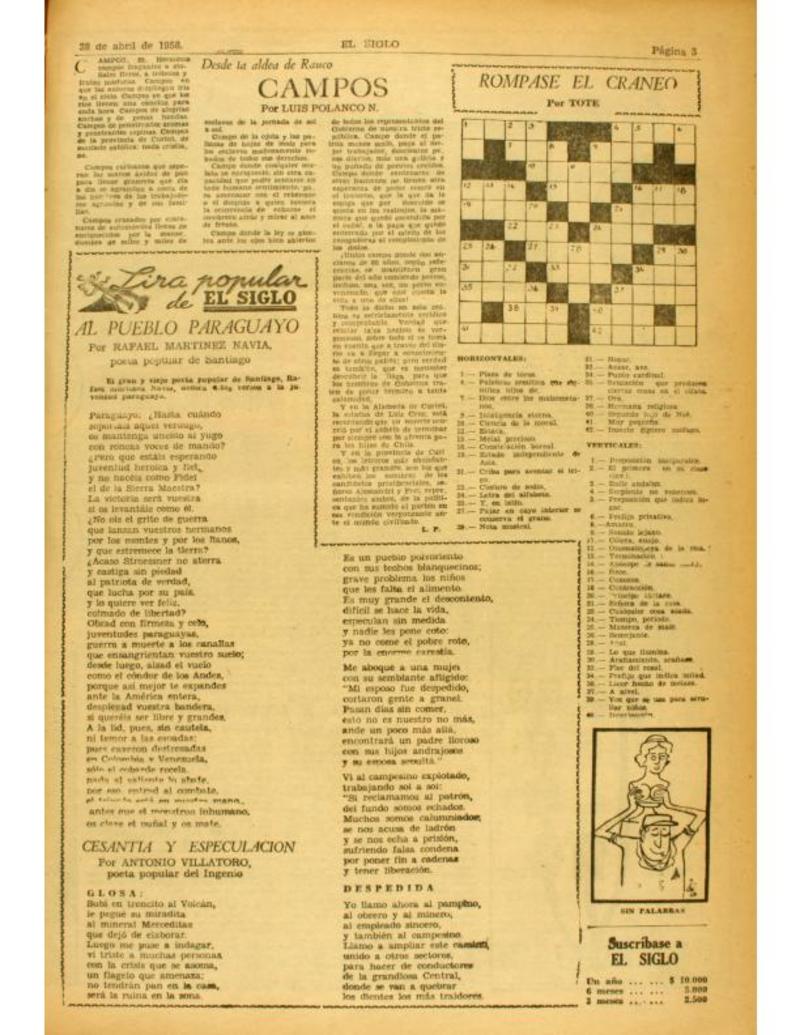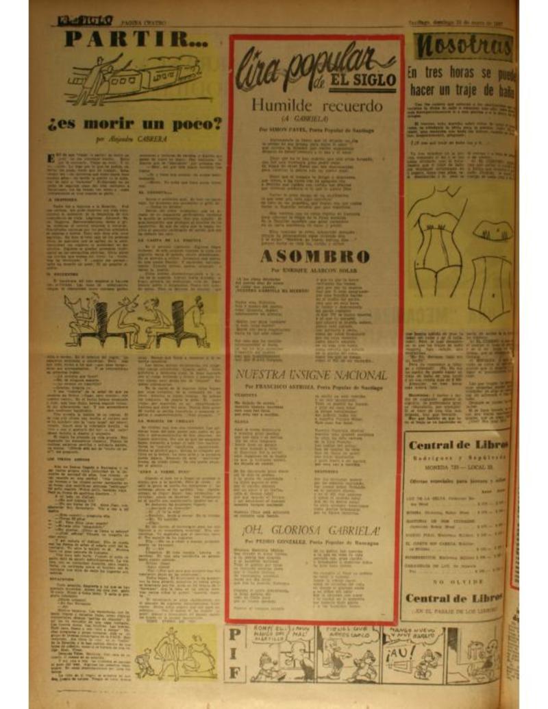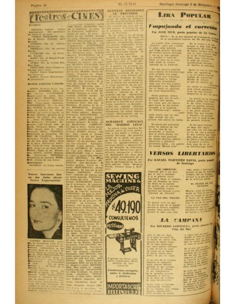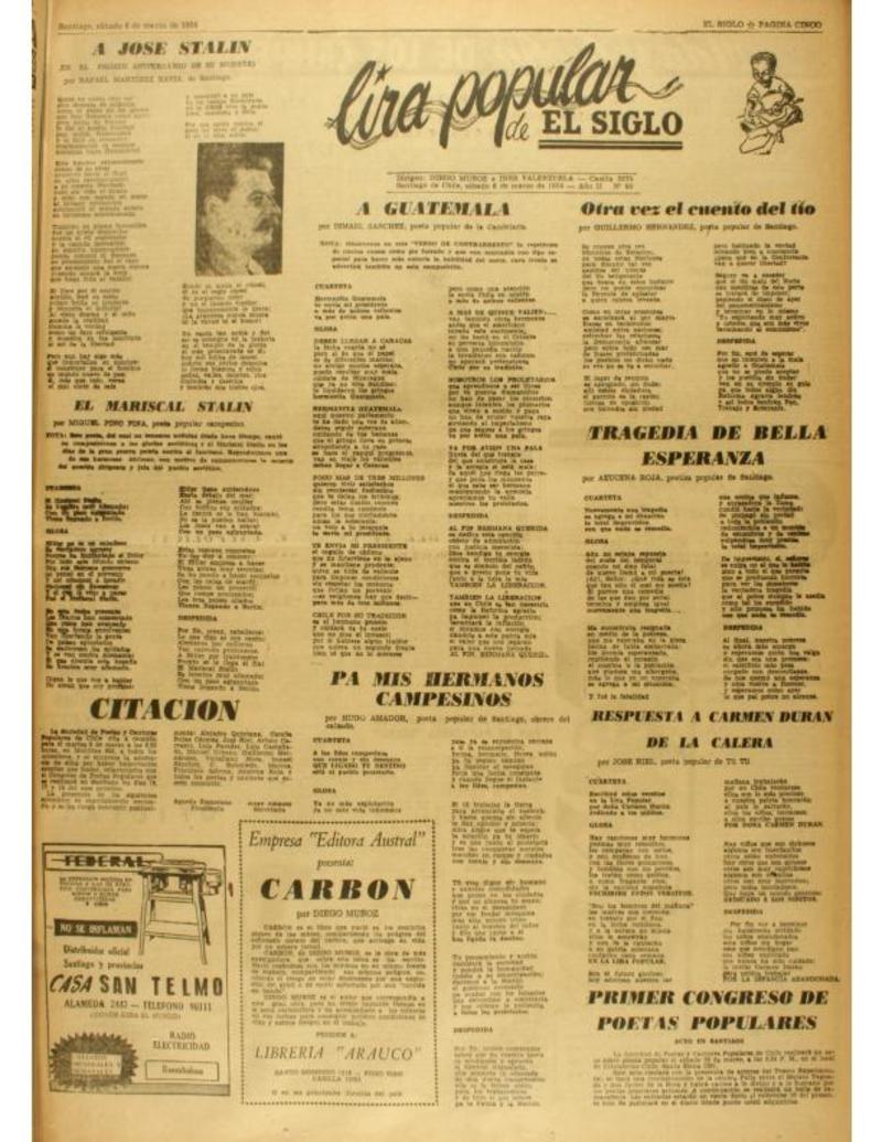 Versos Chilenos ; La construcciòn del Cuartel de Lautaro ; El hundimiento de un vapor en el Norte ; El fin de la crisis ; La aparición del poeta de Bío Bío Esteban Araya L.