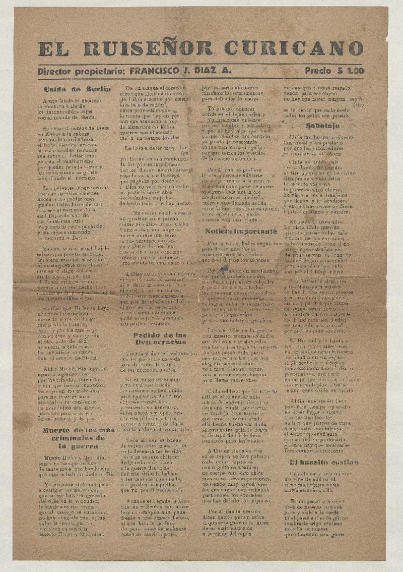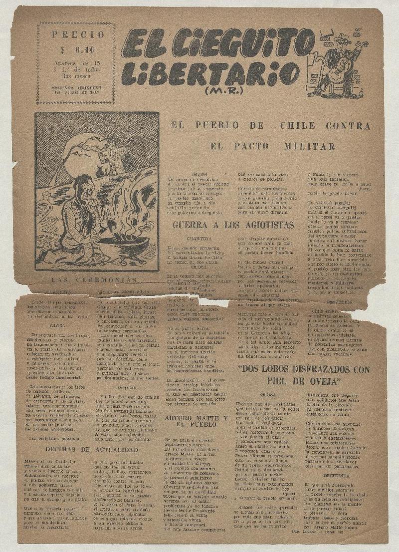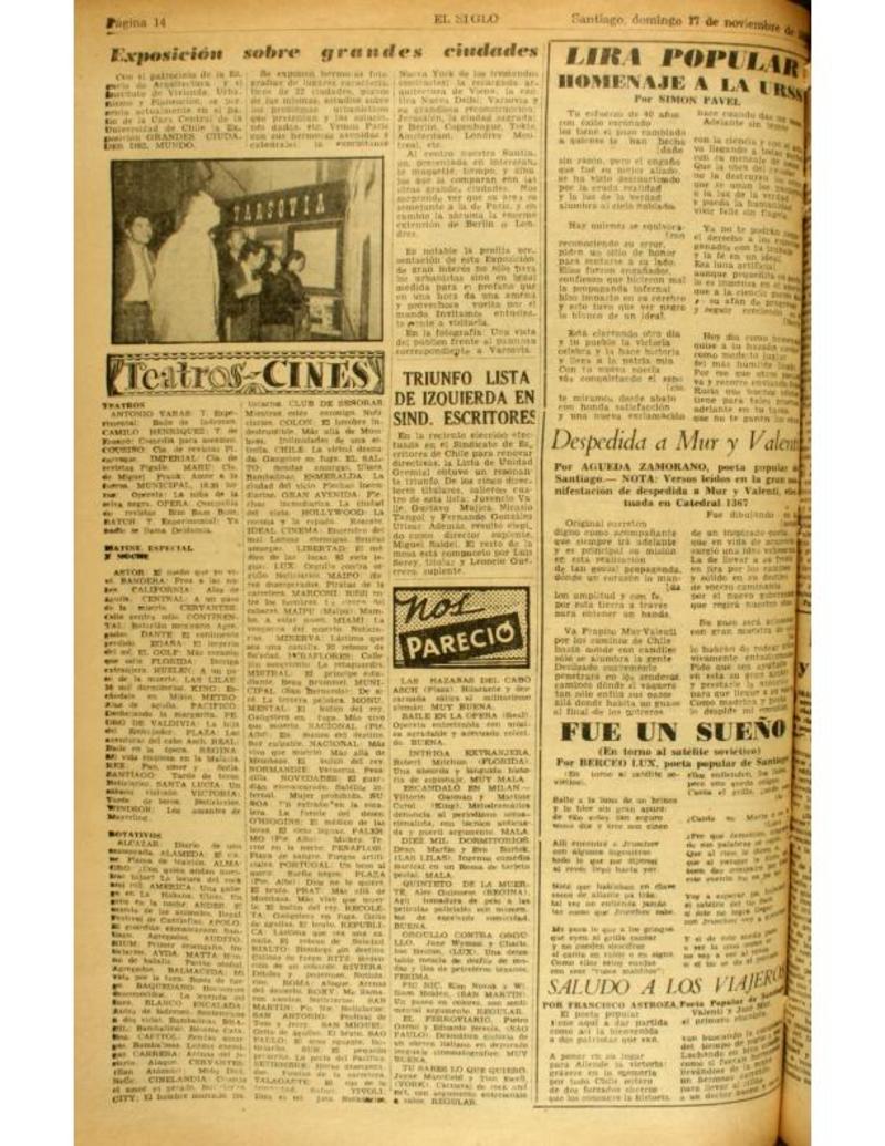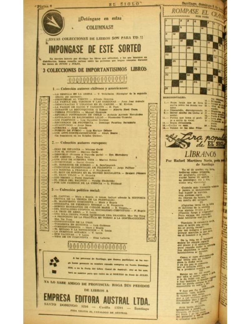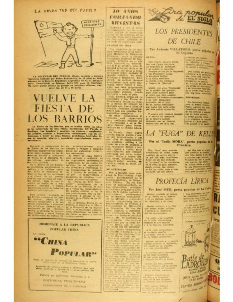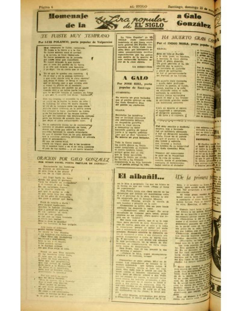 Versos Chilenos ; La construcciòn del Cuartel de Lautaro ; El hundimiento de un vapor en el Norte ; El fin de la crisis ; La aparición del poeta de Bío Bío Esteban Araya L.