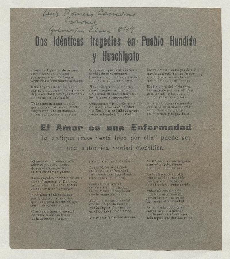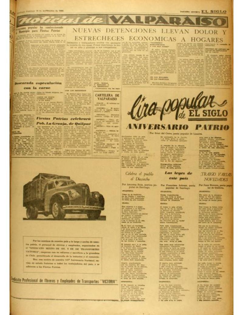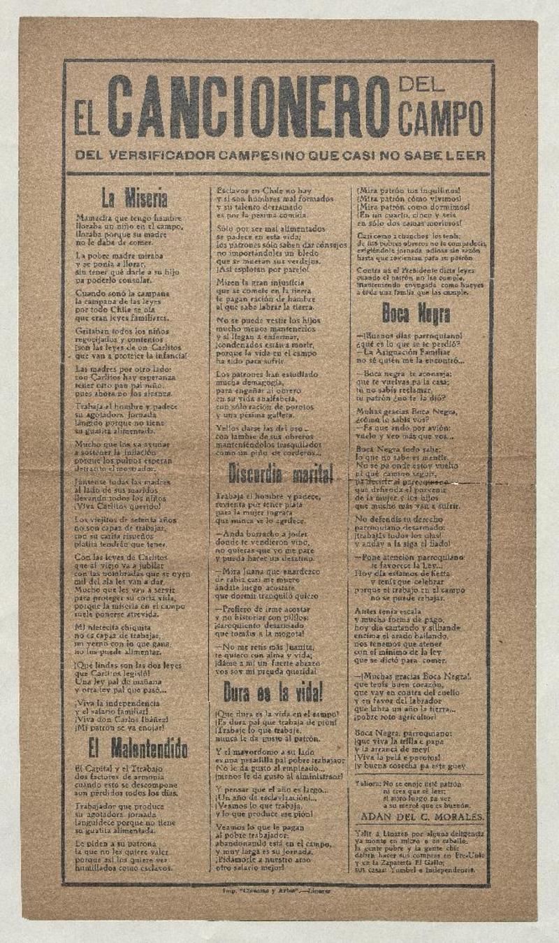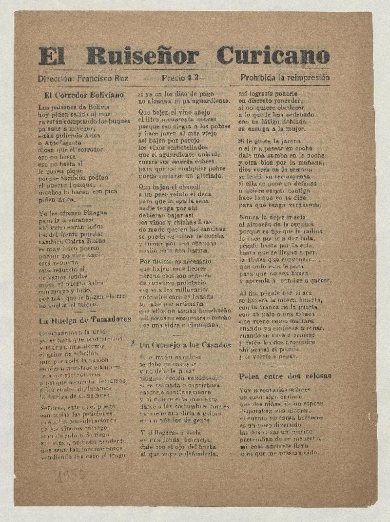 Verso dedicado a las conductoras porteñas ; La miseria en Tarapacá, robos i motines en Iquique Daniel Meneses.