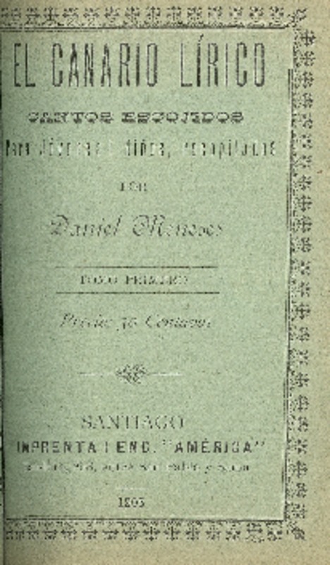El Canario lírico : cantos escojidos para jóvenes i niñas : tomo primero recopilados por Daniel Meneses.