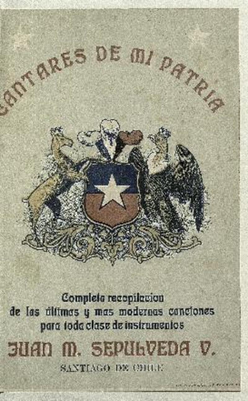 Cantares de mi patria : completa recopilación de las mejores i más modernas canciones, tonadas, habaneras, valses, duos, operetas, cuecas, zarzuelas, tristes, tangos, tonadas cómicas, romanzas, serenatas, vidalitas, etc. [Juan M. Sepúlveda V.].