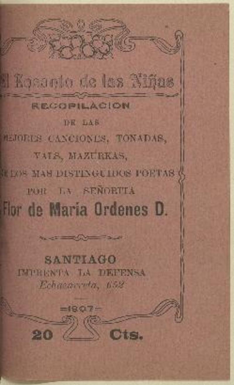 El encanto de las niñas : recopilación de las mejores canciones, tonadas, vals, mazurkas, de los más distinguidos poetas por la señorita Flor de María Órdenes D.