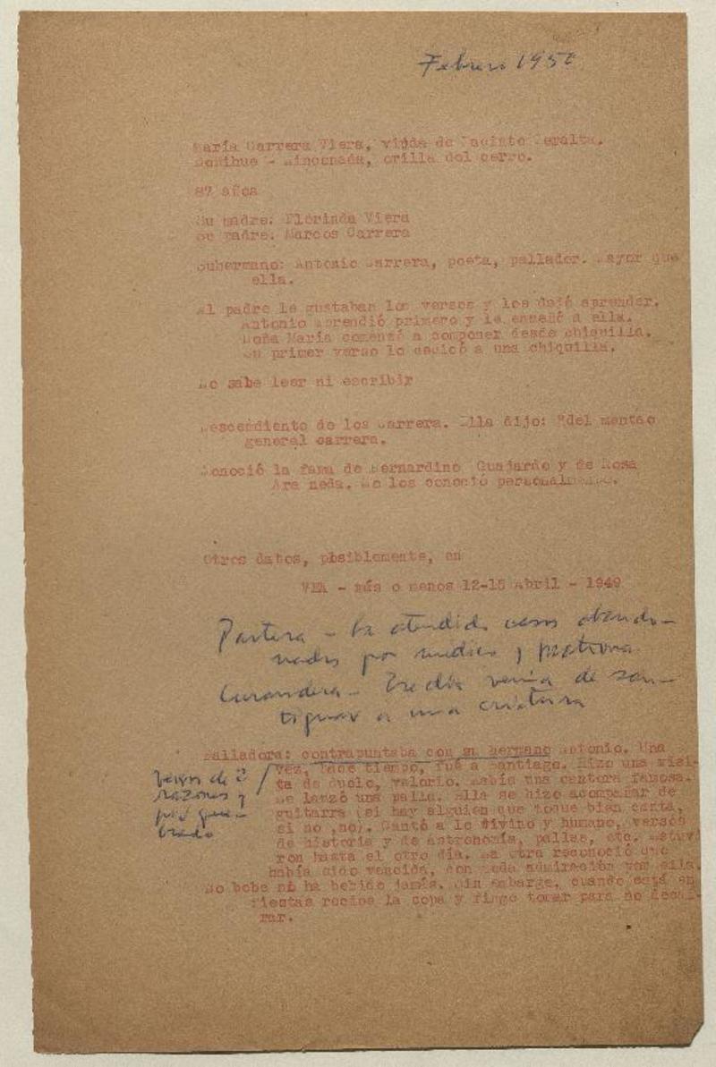 María Carrera Viera [manuscrito] [Diego Muñoz].