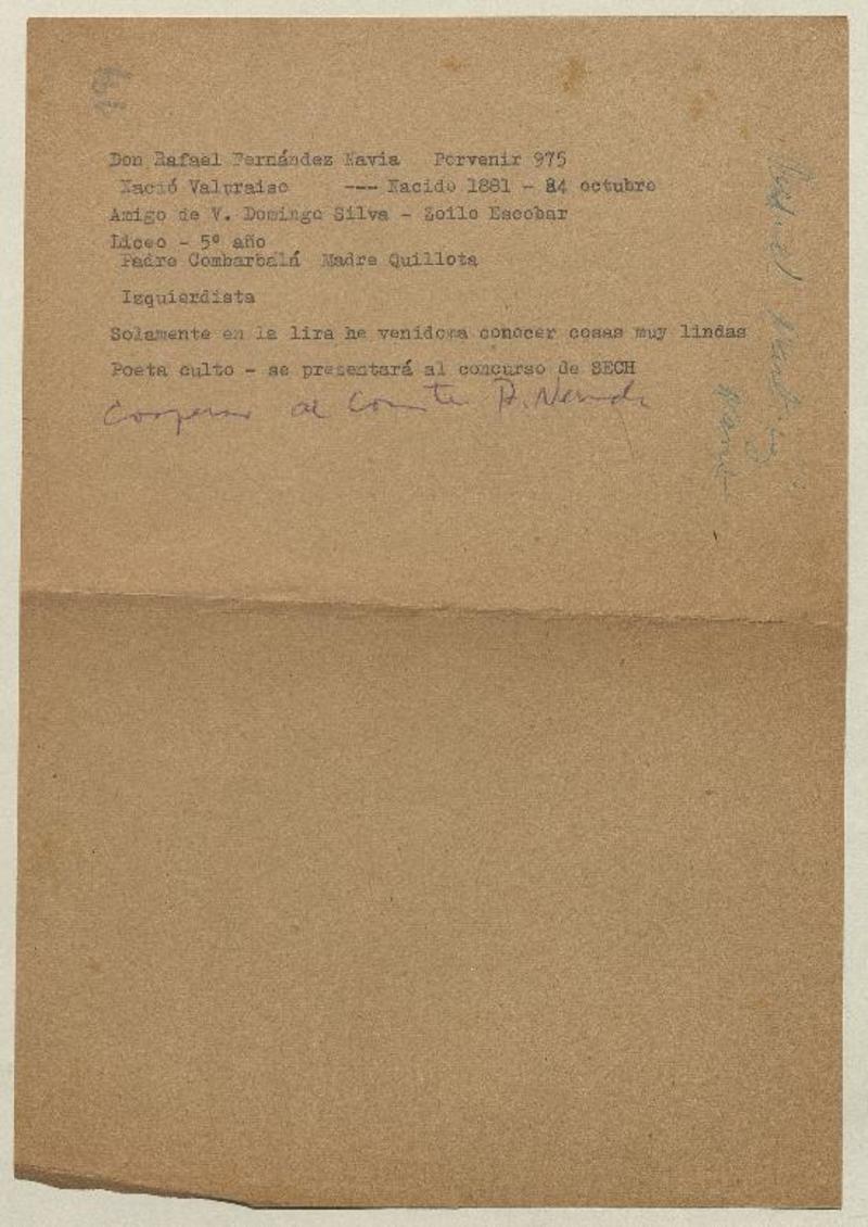 Fernández Navia, Rafael - Poetas chilenos - Biografías - Manuscritos chilenos