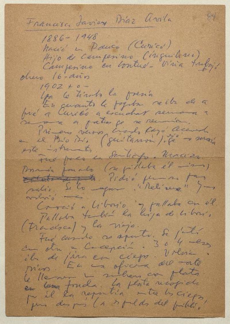 Poetas chilenos - Díaz Ávila, Francisco Javier - Poetas - Biografías - Manuscritos chilenos