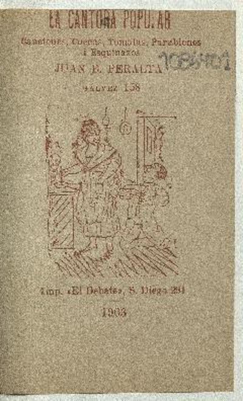 La cantora popular : canciones, cuecas, tonadas, parabienes i esquinazos Juan B. Peralta.