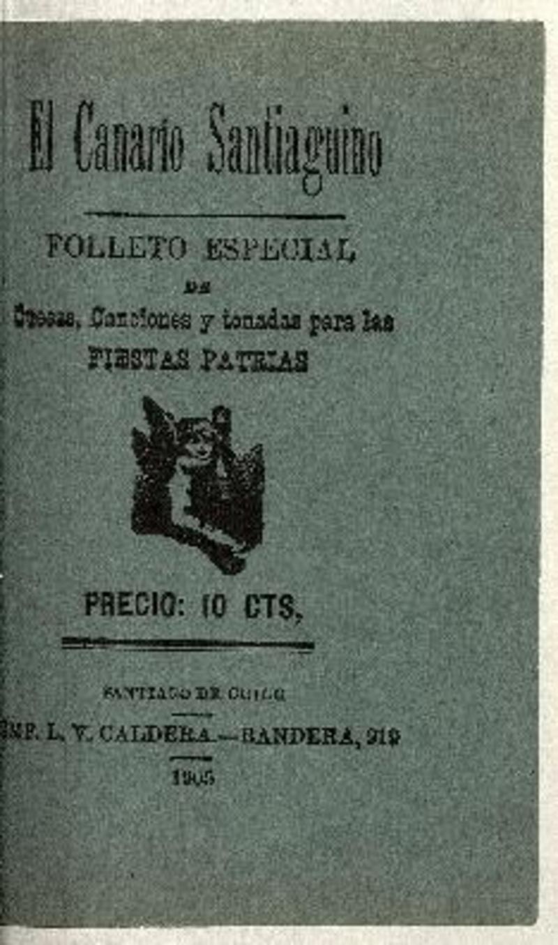 El canario santiaguino : folleto especial de cuecas, canciones y tonadas para las fiestas patrias [Juan Bautista Peralta].