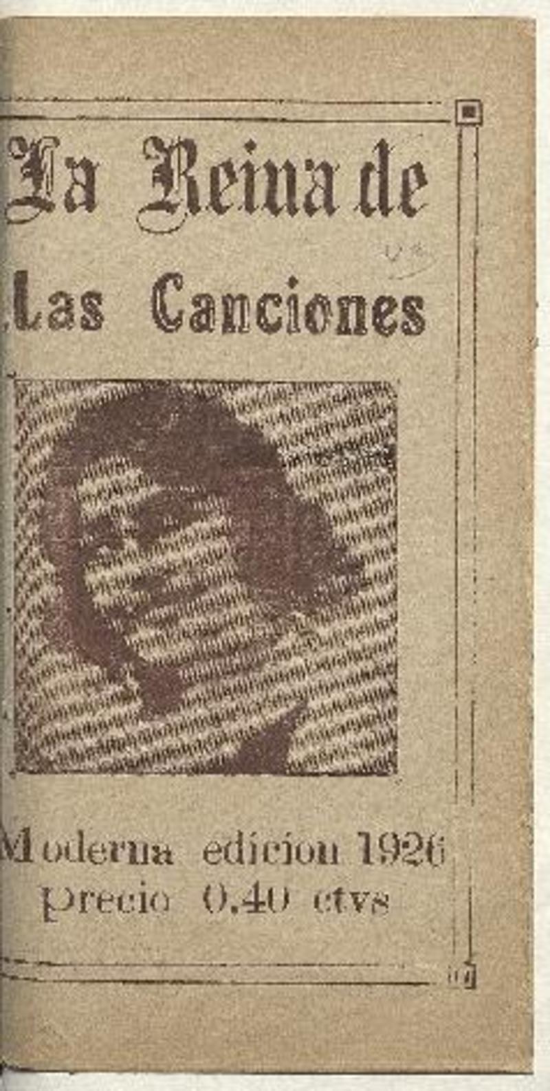 La Reyna de las canciones : moderna edición de canciones, tangos, llimmes, one-stp, vals, etc. : selecta recopilación de las canciones más en boga del año 1926.