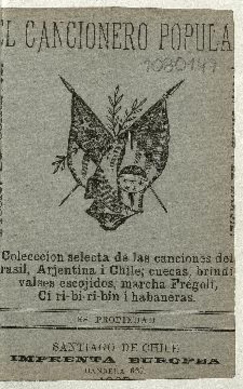El Cancionero popula : colección selecta de las canciones del Brasil, Arjentina i Chile : cuecas, brindi, valses escojidos, marcha Frégoli, Ci ri-bi-ri-bin i habaneras.
