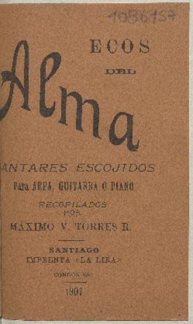 Ecos del alma : cantares escojidos : para arpa, guitarra o piano recopilados por Máximo V. Torres R.
