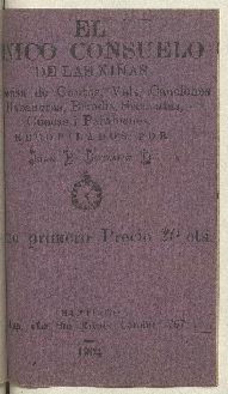El Único consuelo de las niñas : colección de cantos, vals, mazurcas, canciones, zarzuelas, operas, habaneras, brindis, serenatas, cuecas i parabienes : tomo primero recopilados por Juan R. González O.