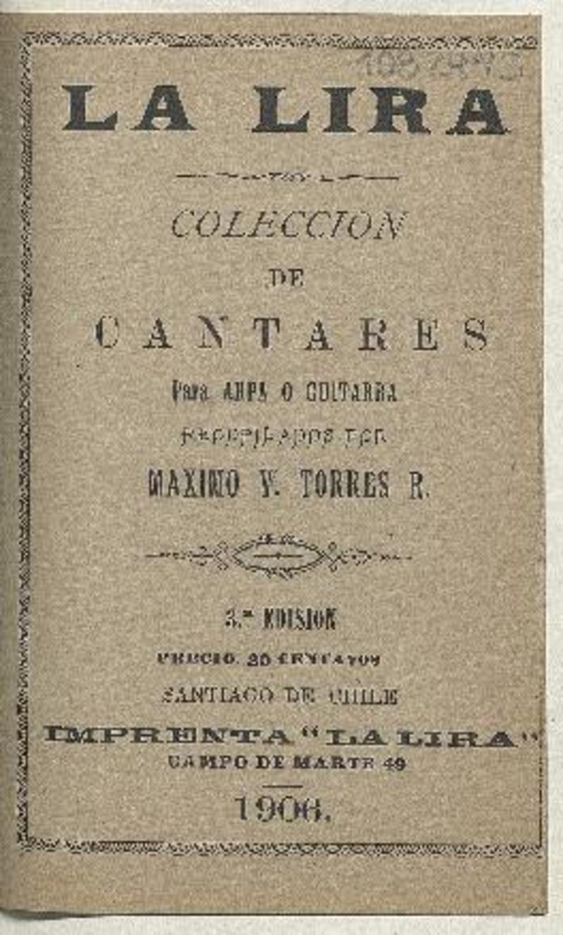 La Lira : colección de cantares para arpa o guitarra recopilados por Máximo V. Torres R.