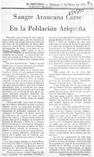 Sangre araucana corre en la población ariqueña [artículo] Sergio Miguel Salinas Cordero.