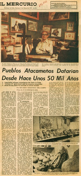 Pueblos atacameños datarían desde hace unos 50 mil años [artículo] Eduardo Chaigneau del Campo.
