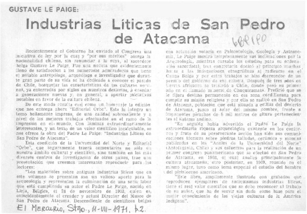 Industrias líticas de San Pedro de Atacama". [artículo]