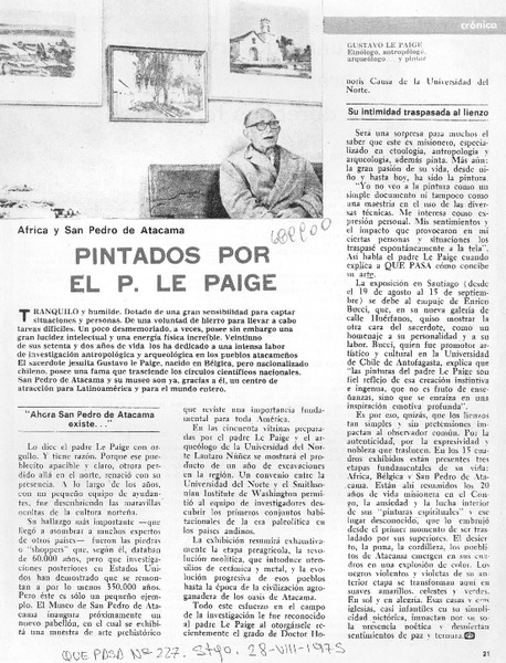 Padre Gustavo Le Paige, veinte años en San Pedro [artículo] Héctor Pumarino Soto.