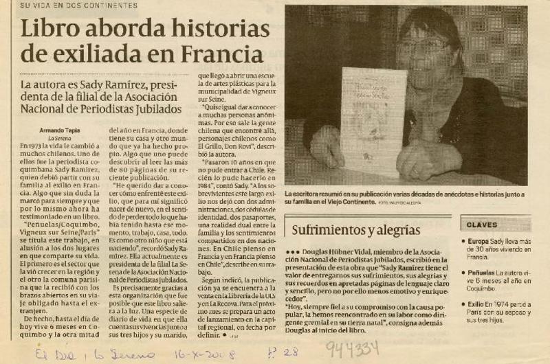 Libro aborda historias de exiliada en Francia [artículo] Armando Tapia.
