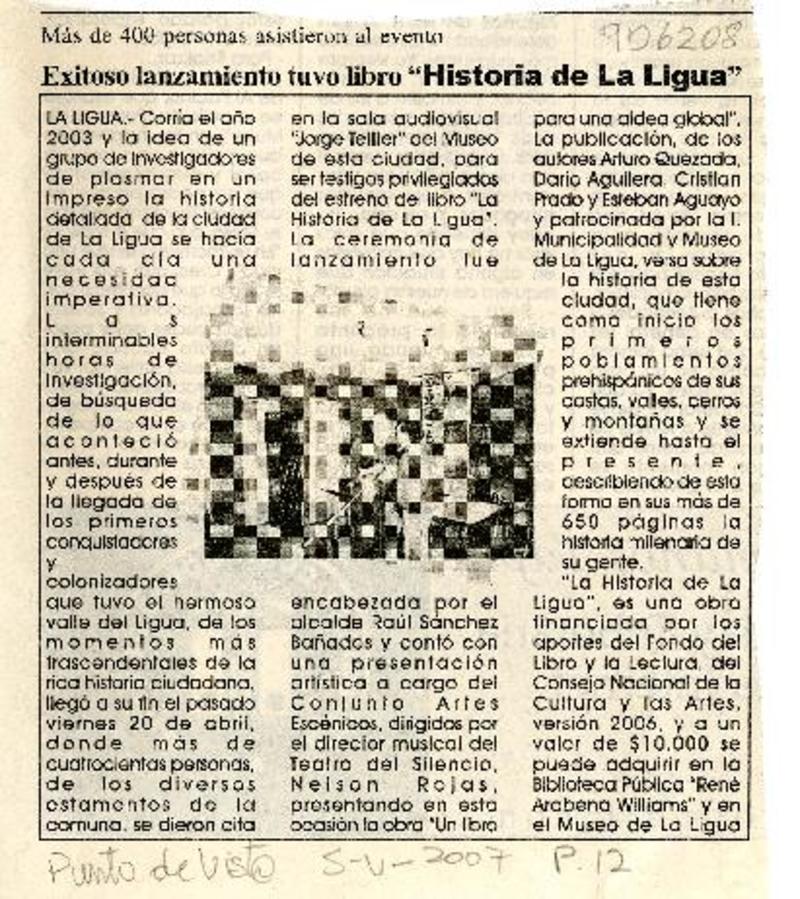 Exitoso lanzamiento tuvo libro "Historia de La Ligua". [artículo]