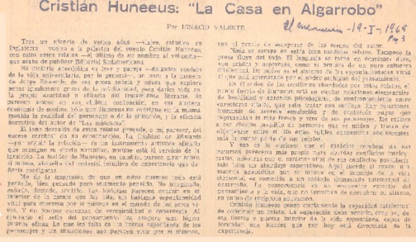 Cristián Huneeus, "La casa en Algarrobo" [artículo] Ignacio Valente.
