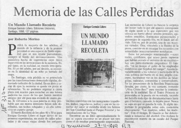 Memoria de las calles perdidas [artículo] Roberto Merino.