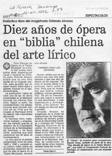 Diez años de ópera en "biblia" chilena del arte lírico [artículo].