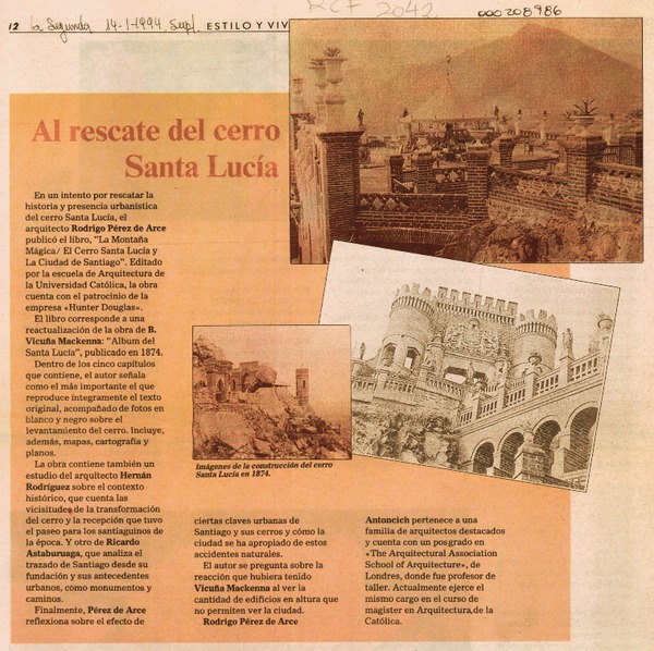 Libro ilustrado invita a conocer a fondo el cerro Santa Lucía [artículo] Jazmín Lolas E.