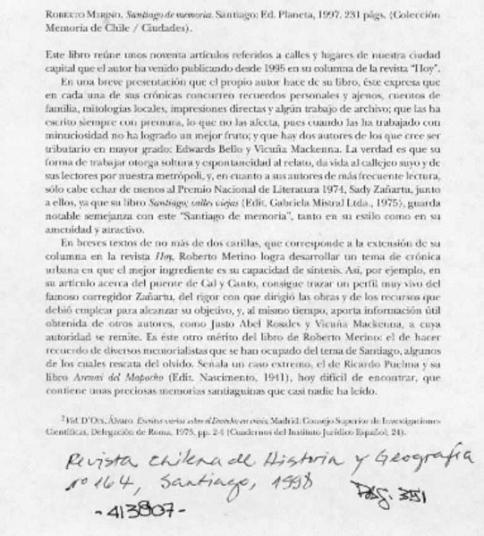 Santiago y sus puntos cardinales [artículo] Marino Muñoz Lagos.