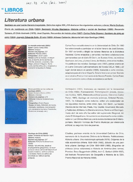 Santiago a través de la novela [artículo] Hugo Montes B.