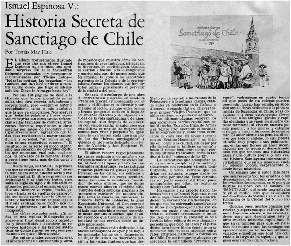 Historia secreta de Sanctiago de Chile [artículo] Tomás Mac Hale.