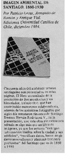 Imagen ambiental de Santiago, 1880-1930. [artículo]