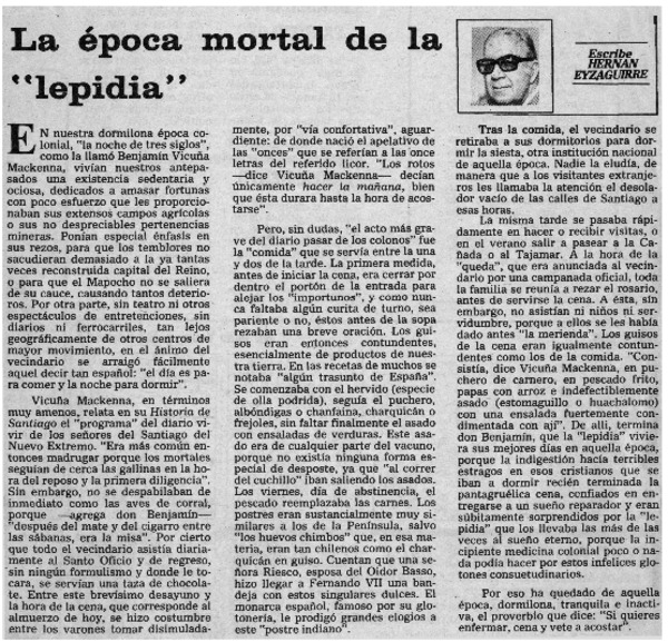 La época mortal de la "lepidia" [artículo] Hernán Eyzaguirre.