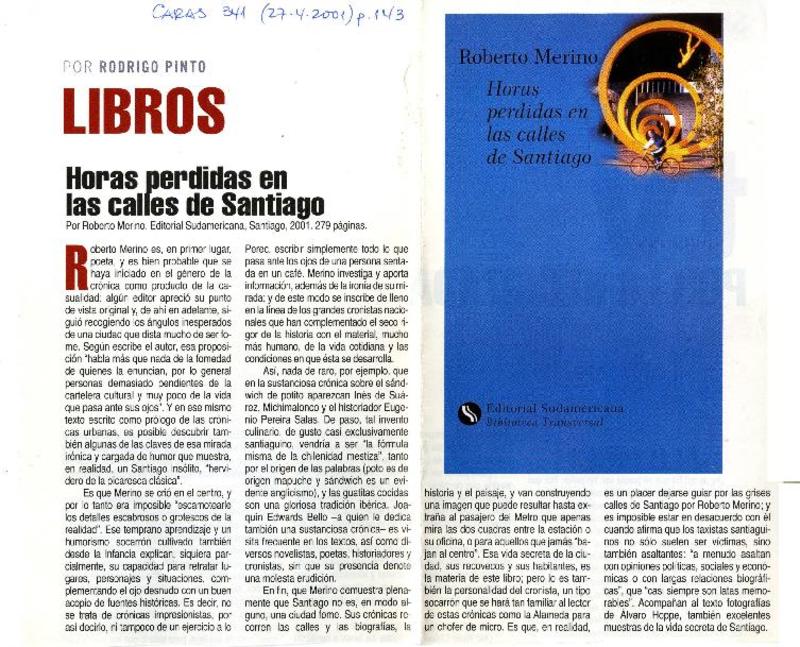 Horas perdidas en las calles de Santiago [artículo] Rodrigo Pinto