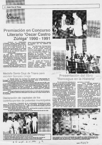 Presentada la "Historia de Rancagua" de Guillermo Drago [artículo].