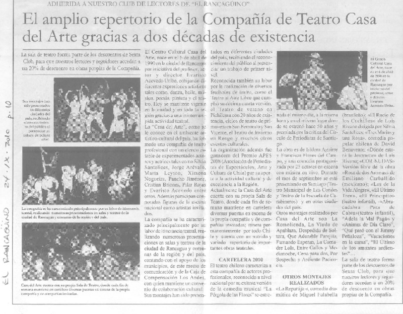 El Amplio repertorio de la compañía de Teatro Casa del Arte gracias a dos décadas de existencia [artículo].