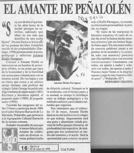 El "Peñalolén", de Amante Eledín Parraguez [artículo] Luis Merino Reyes.