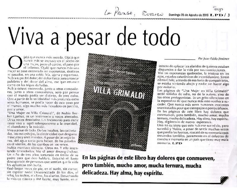 Sobreviviente de Villa Grimaldi (entrevista) [artículo] Macarena Gallo.