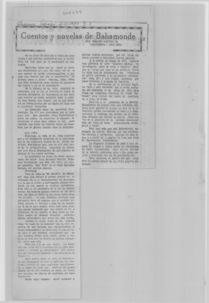 Cuentos y novelas de Bahamonde [artículo] Sergio Gaytán M.