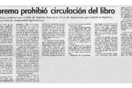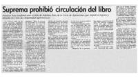 Suprema prohibió circulación del libro. [artículo] Las Últimas Noticias (Diario : Santiago, Chile)-- jun. 16, 1993, p. 15. .