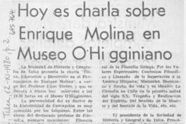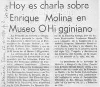 Hoy es charla sobre Enrique Molina en Museo O'Higginiano. [artículo] La Mañana (Talca, Chile)-- nov. 12, 1980, p. 2. .