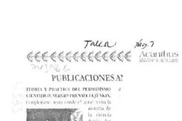 Teoría y práctica del periodismo científico [artículo] Acanthus (Revista : Talca, Chile)-- no. 70 (jun. 2002) p. 7. .
