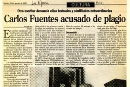 Carlos Fuentes acusado de plagio [artículo]. La Epoca. -- ago. 29, 1995, p. B11 .