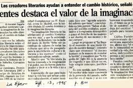 Fuentes destaca el valor de la imaginación [artículo]. La Epoca. -- sept. 13, 1995, p. B11 .