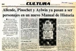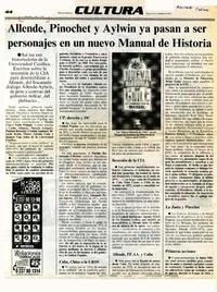 Allende, Pinochet y Aylwin ya pasan a ser personajes en un nuevo Manual de Historia [artículo] / La Segunda (Diario : Santiago, Chile)-- noviembre 19, 1996, páginas 44-45. .