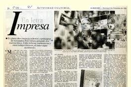 En letra impresa [artículo] / Eduardo Arancibia M. El Mercurio (Diario : Santiago, Chile)-- diciembre 8, 1996, página C10, (suplemento) .