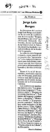 Jorge Luis Borges [artículo] / Mauricio Babilonia. Las Últimas Noticias (Diario : Santiago, Chile)-- oct. 20, 1997, p. 17 .