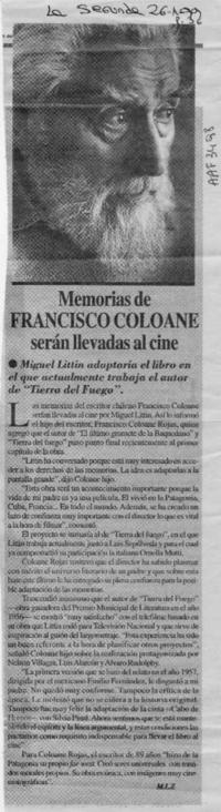 Memorias de Francisco Coloane serán llevadas al cine [artículo] M. L. Z.