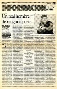Un real hombre de ninguna parte [entrevista] [artículo] / Emilio Antilef Arriagada. Tiempos del Mundo. -- junio 18, 1998, página A5 .