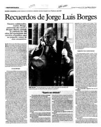 Recuerdos de Jorge Luis Borges [artículo]. Las Últimas Noticias (Diario : Santiago, Chile)-- ago. 22, 1999, p. 12-13 retr. .