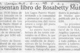 Presentan libro de Rosabetty Muñoz [artículo]. El Llanquihue (Diario : Puerto Montt, Chile)-- nov. 6, 1998, p. A2 .