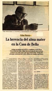 La herencia del alma mater en la casa de Bello [artículo] / Maura Brescia. La Epoca. -- octubre 11, 1987, página 40 .